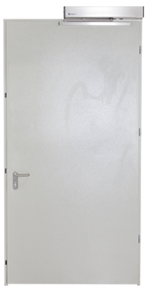 General Description: The door leaf is made of two 0.8mm galvanized steel sheets, reinforced by an internal profile structure. There are no welding points on the door – increased corrosion resistance. The door is equipped with a telescopic bottom insert for door height adjustment. Double layered door leaf filling – high density rock wool and fire resistant gypsum, peripheral fire and smoke resistant gasket with intumescing core is attached to the door leaf edge.